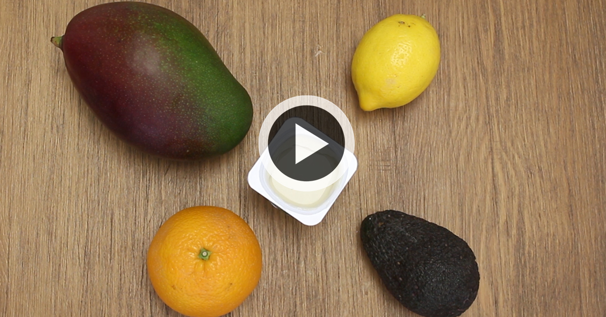 Para seguir, cogeremos un mango, y haremos el mismo proceso que con el aguacate; pelarlo y coger la mitad de la pieza. Esta fruta, tiene un alto valor nutritivo, debido a que es rica en vitaminas y antioxidantes.